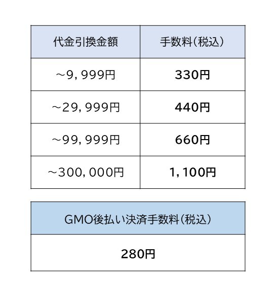 また、代金引換、GMO後払いをご利用の場合は、お買い上げ金額にかかわらず以下の手数料がかかります。
